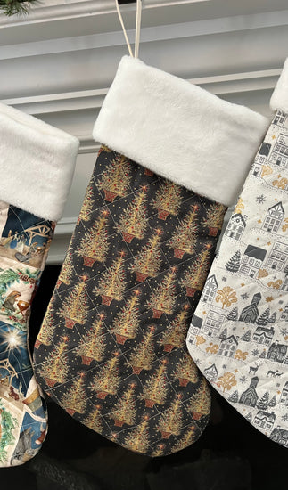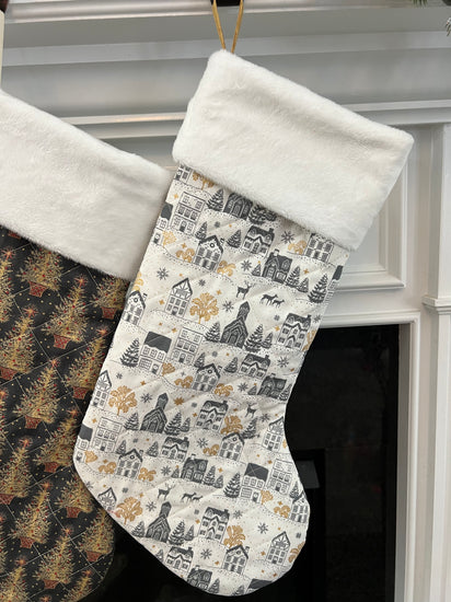 Bring handcrafted charm to your holiday décor with these beautifully quilted Christmas stockings. Each stocking is handmade with high-quality cotton fabrics and fully lined for durability and structure. The soft, Minky white cuff and traditional patterns create a timeless, cozy look perfect for any mantel.