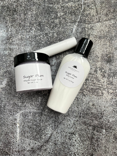 A carefully, handcrafted lip balm, 2oz jar of our foaming sugar scrub, and a 2oz bottle of lotion in your choice of scent.