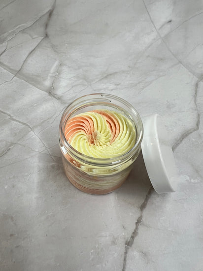 Infused with the uplifting scent of Ray of Sunshine — a cheerful blend of fresh citrus, delicate florals, and soft musk — this luxurious sugar scrub is your new skincare essential for radiant, silky-smooth skin.